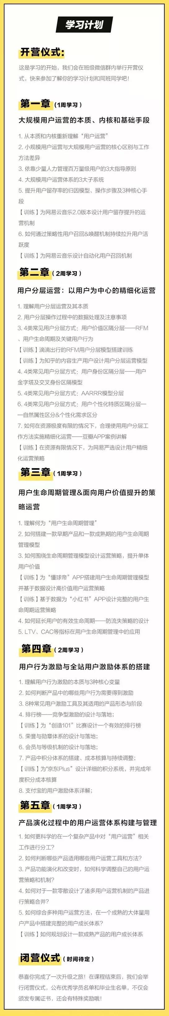 目前来说,这个课程是目前业内唯一一堂在如何做RFM用户分层、如何设计用户防流失+生命周期运营、如何搭建积分体系、如何通过策略设计长期用户召回机制、如何系统构建用户成长体系等诸多含金量超高的难点问题下都接近做到了可以手把手教你落地的课程。