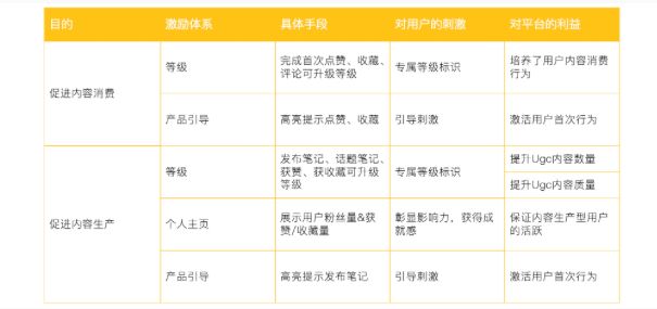 基于三大激励体系,小红书对刺激用户消费内容&生产内容使用了一下激励手段: