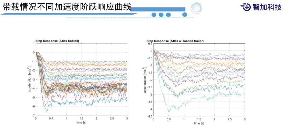 上图是挂不同的载重,对系统的动力学特性影响也比较多。比如同样的阶跃响应,不同的质量下,可以看到曲线的差异很大。直观说,同样踩刹车,载重大的可能就刹不住,当然在我们控制过程中,可能会引入更多的问题。