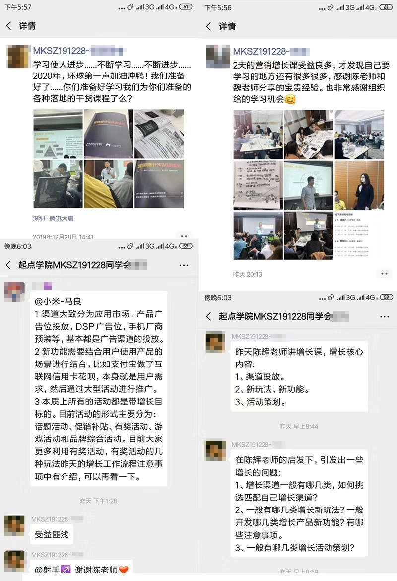 每期报名后的学员都会进入专属的学习交流圈子。最新最及时的热点资讯,不断积累的资源和壮大的校友圈子,在这里你或许可以找到行业知己,合作伙伴和人生挚友。