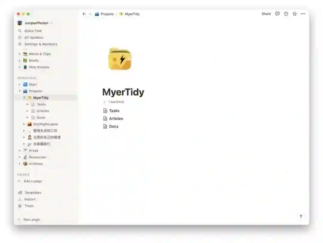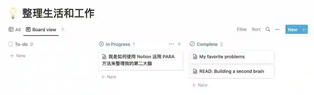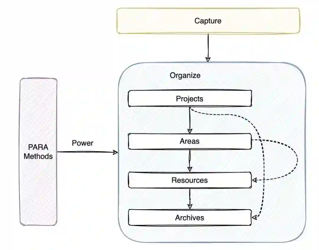 PARA 能描述一个事情的生命周期的流向:如果它是你本身短期内专注的,那么它属于 Projects 类别,而如果在某个时间段已经完成了这个事情,那么你可以根据它的性质,移动到 Areas 或者 Resources;如果这个事情本身中途废弃了,那么你可以移动到 Archives 里进行归档 —— 而它的生命周期定义,完全是你个人根据 PARA 的指导来进行的。