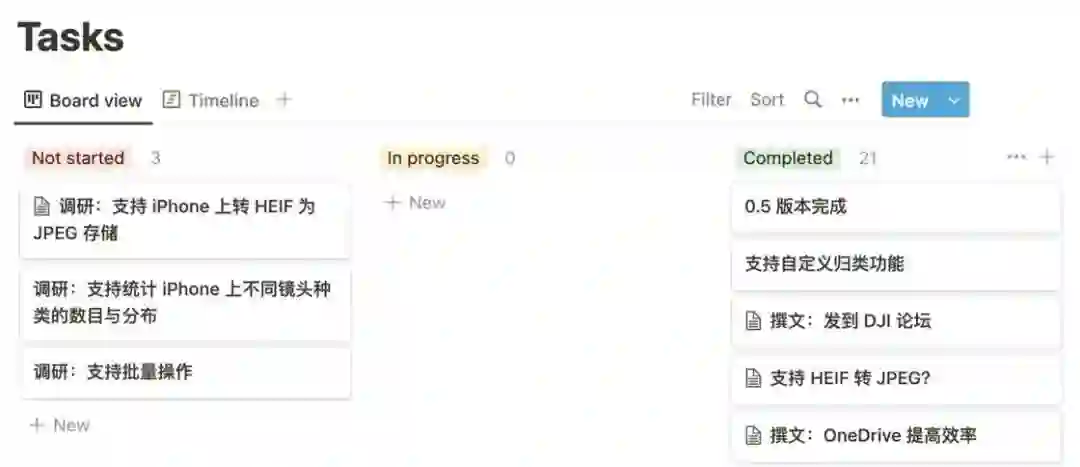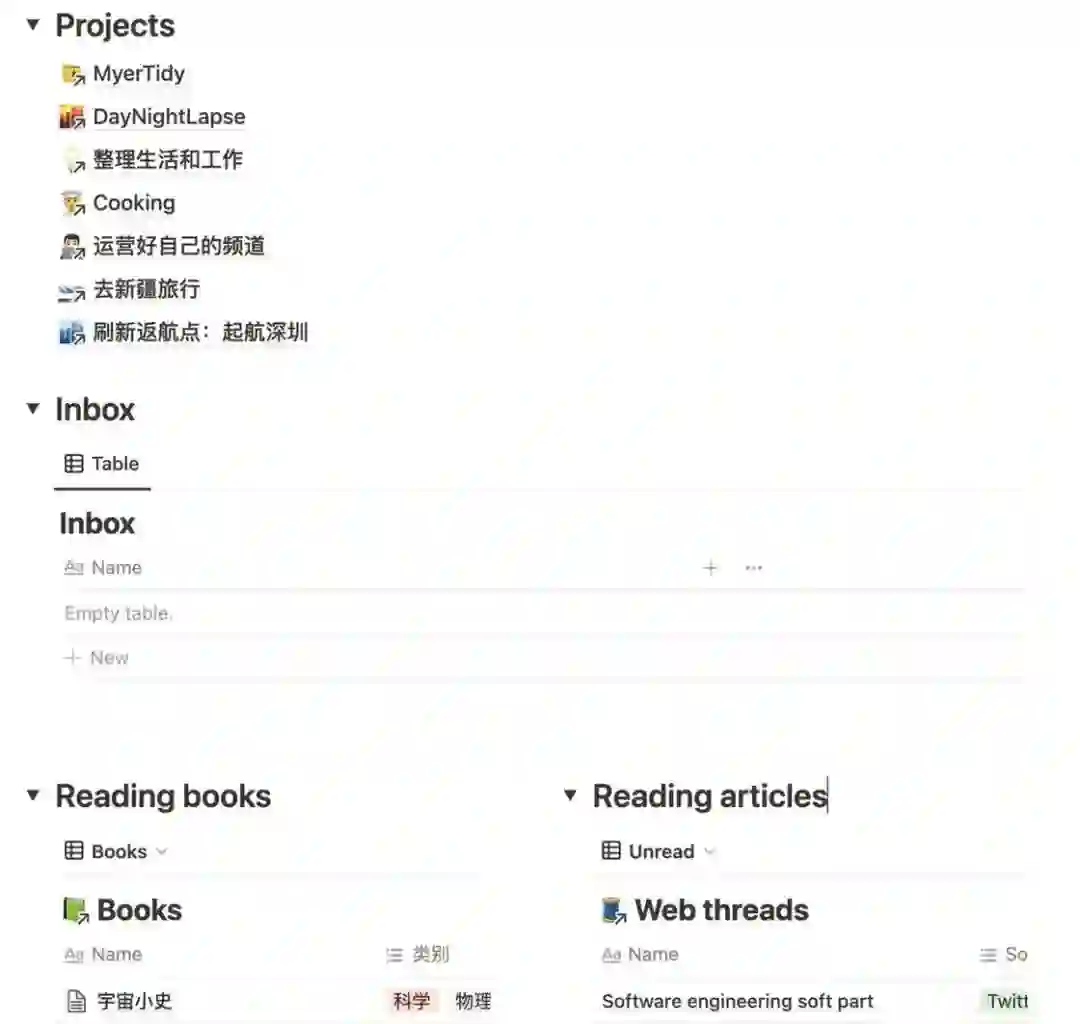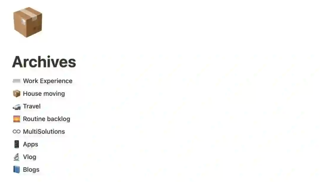 Archives: Inactive items from the other three categories 正如字面意思「归档」所描述的,当前已经用不上的不活跃的事情。