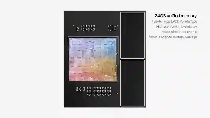 原版 M1 和 A15 仅支持 LPDDR4x 内存,而 M2 支持更新的 LPDDR5 内存标准。其中最大的变化是支持更高的内存时钟速度。根据苹果的数据,M2 运行速度为 6400Mbps/pin(LPDDR5-6400),比原版 M1 的 4266Mbps/pin(LPDDR4x-4266)有显著提升。最终结果是,在 SoC 的 128 位内存总线上,M2 有 100GBcond 的内存带宽可供使用,比 M1 约 68GBc)增加了 50%。