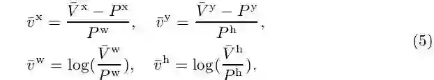 对于可见部分估计分支的正样本而言,其回归目标和整体估计分支一致,定义如下: