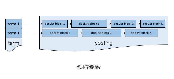 此外,针对NoSQL场景,可通过HashMap实现主键到docID的映射(idx文件),这样就可支持主键到文档的随机访问。由于倒排索引的docID列表可以直接访问正排表,因此倒排检索并不会使用该idx。
