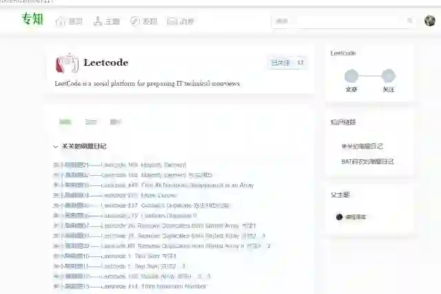 专知网站查看Leetcode刷题日记: