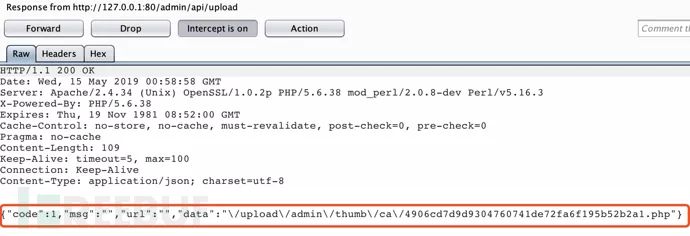 测试后发现这里的上传点果然只对文件后缀进行了前端校验,直截了当上传.php后缀的文件: