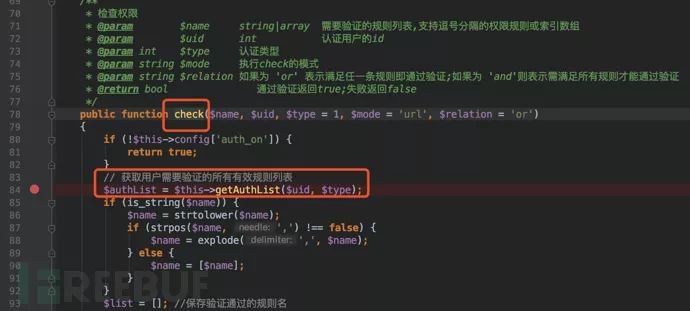 继续查看getAuthList的调用情况,是在check函数中: