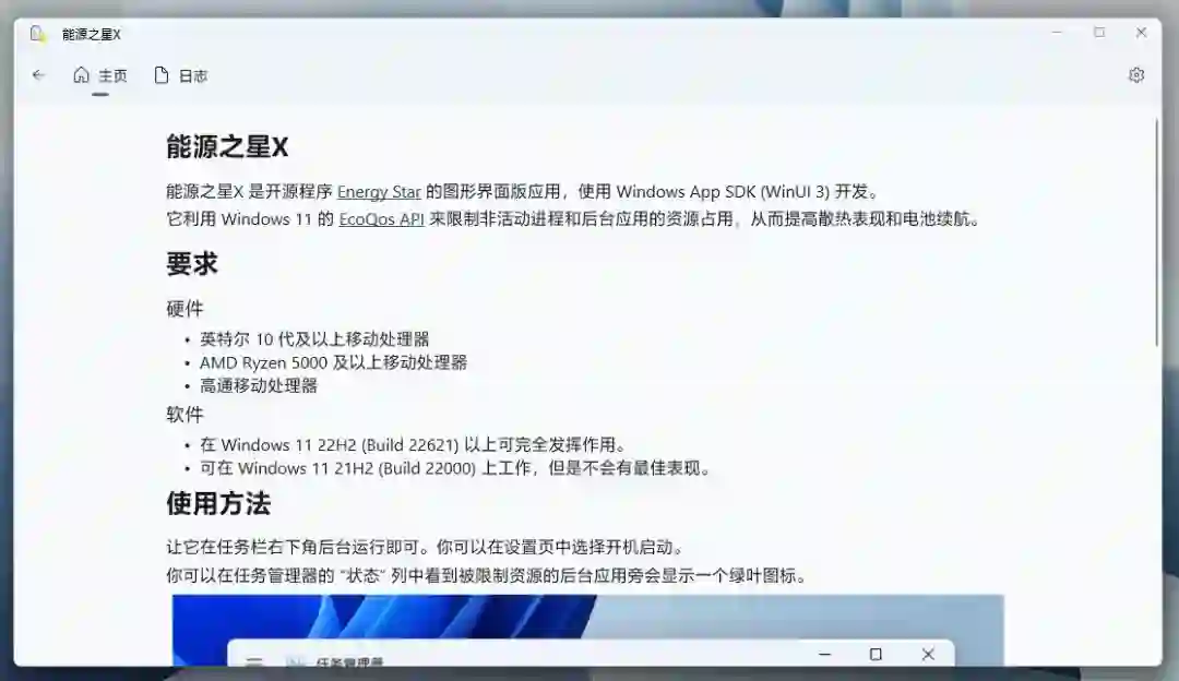 「能源之星 X」完全免费,你可以从微软应用商店进行下载。它利用上面提到的 EcoQoS API 来限制非活动进程和后台应用的资源占用,硬件要求和微软官方 EcoQoS 要求一致,系统版本这边开发者则更建议在 Windows 11 22H2 (Build 22621) 及以上版本中使用,在 Windows 11 21H2 (Build 22000) 及以上版本表现可能会受到一定影响。