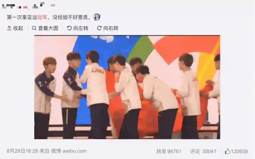 中国队得冠军了!昨天(8月29日),中国队以3:1战胜韩国队,获得了雅加达亚运会《英雄联盟》项目的冠军。虽然只是表演项目,但能在大型综合性运动会的赛场上看到电竞大神们低举着五星红旗和对手握手,足够令电竞的真粉假粉路人粉一边抹眼泪一边大笑。