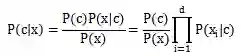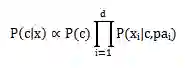 朴素贝叶斯(分类器)是一种生成模型,它会基于训练样本对每个可能的类别建模。之所以叫朴素贝叶斯,是因为采用了属性条件独立性假设,就是假设每个属性独立地对分类结果产生影响。即有下面的公式: