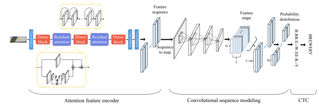 注意特征编码器:提取图片中文字区域的特征向量,并生成特征序列;