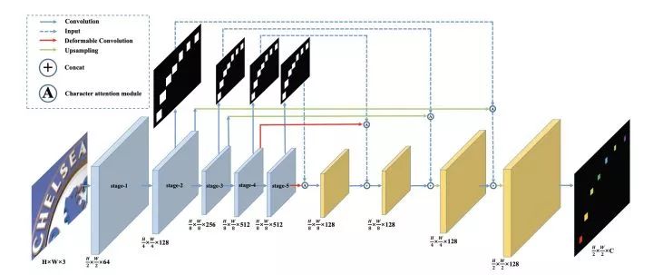 该篇文章于MEGVII 2019年提出。首先在文字识别网络中加入语义分割分支,获取每个字符的相对位置。