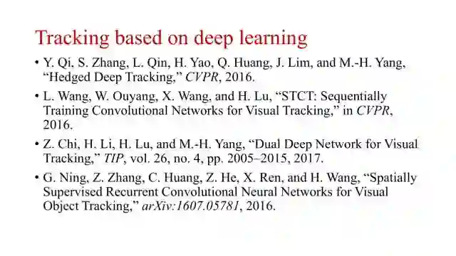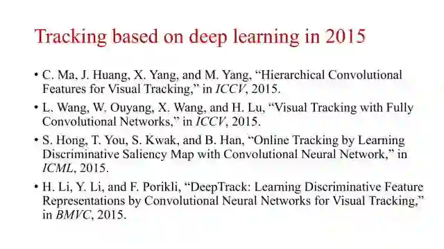 随着深度学习的火热,从2015年开始,利用深度学习进行目标跟踪的研究工作越来越多。