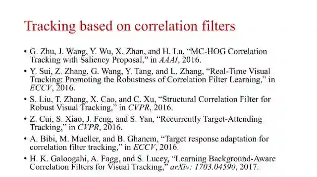 本文将从三个方面介绍视觉跟踪领域最近的进展:基于深度学习的目标跟踪研究进展、基于相关滤波器的目标跟踪研究进展、以及其他的方法介绍。