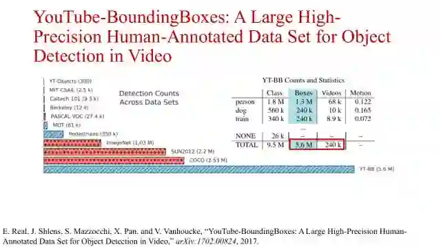 以及Google发布的YouTube-Bounding Boxes数据集,该数据集适用于在视频的目标检测任务、以及目标跟踪算法的训练和测试。