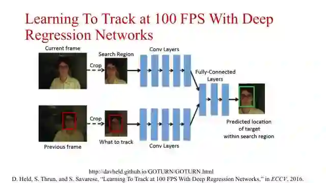 在ECCV2016上还有一个采用深度回归网络进行目标跟踪的工作,与目标检测中基于回归方法的卷积网络有些类似,这个方法直接对目标位置进行回归。