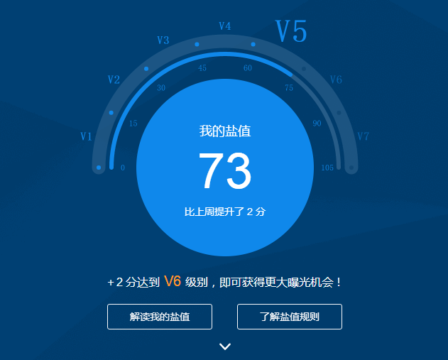 盐值是知乎为机构帐号特别推出的评级功能,从内容质量、创作力、影响力、活跃度和信誉评级五个维度评估帐号,每周进行一次评分,达到不同级别会有不同的权益和曝光度。例如,盐值达到V3可以发布提问,V5可以开设专栏,V6可以获得「优秀回答者」的参评资格。盐值功能的推出,让运营知乎机构帐号变得像升级打怪,可是最特别的是,帐号如果疏于打理,盐值分数会自动降低,换句话说,升级不是升上去就高枕无忧,帐号还随时有降级的可能。