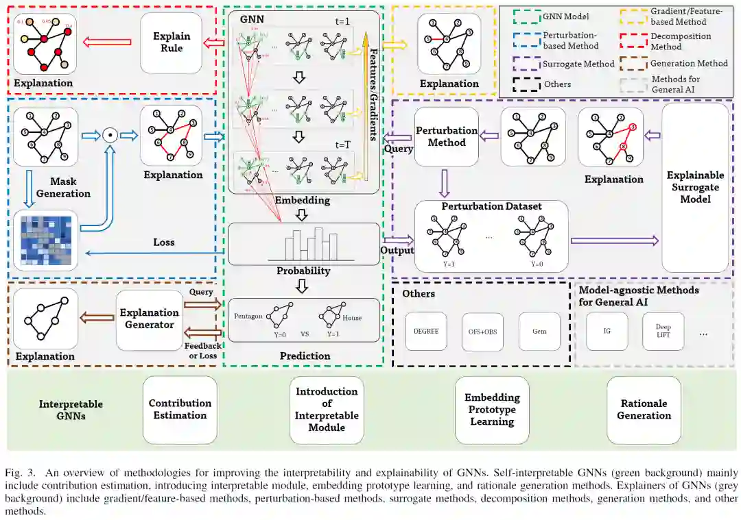 在介绍了解释形式、解释方法的类别等基本概念后,该综述将涉及图神经网络可解释性的工作分成了自解释(interpretable GNNs)和事后解释(post-hoc explainers)两类。