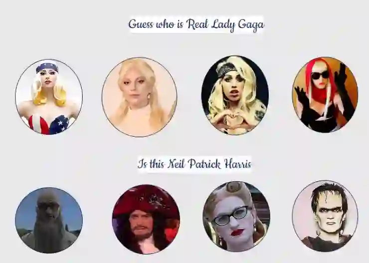 如下图所示,伪装包括有意和无意的改变面容来混淆自己的身份,或者模仿别人的身份。你能猜出下面谁是 Lady Gaga,谁是 Neil Patrick Haris 吗?