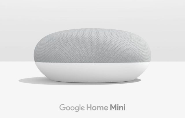 发布会亮相的第一个产品是之前被曝光的缩小版智能音箱——Google Home Mini,其正面有 4 颗 LED 指示灯,支持触控操作,用户可以收听到 360 度音效,它还可以与其它 Google Home 无线连接,组成智能音箱网络。发售信息方面,Google Home Mini 有黑、灰和珊瑚色 3 色可选,售价 49 美元,将于 10 月 19 日发售。