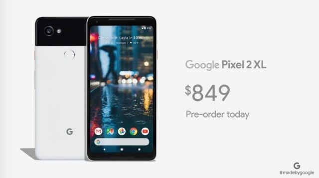 Pixel 2 有白、黑和蓝色 3 种颜色可选,最便宜的 64GB 版本要价 649 美元,而 128 GB 版本为 749 美元,Pixel 2 XL 仅有黑和白两色,起售价 849 美元,两款手机将于 10 月 17 日开始发货。