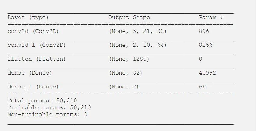 model.add(Conv2D(32, 3, 2, activation = 'relu', input_shape = (12, 44, 3)))