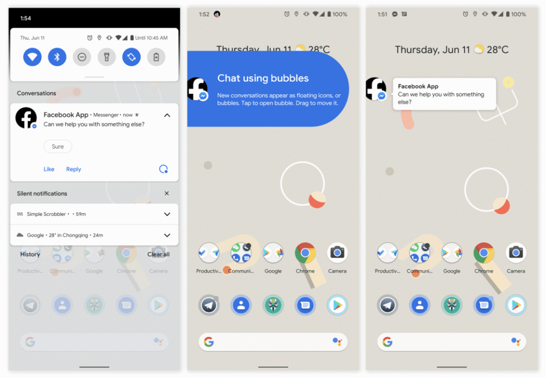 在 Android 11 中,Google 开始强调「人脉沟通(People)」这一概念,同时将通知中的聊天消息以「对话」的形式独立出来,从呈现方式到交互方式上为这些消息通知赋予新的样式。