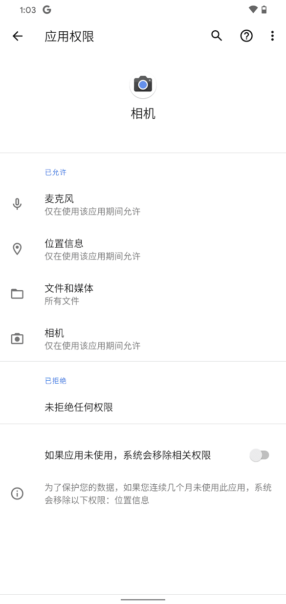 此外正如我们此前介绍 DP3 时所提到的那样,除了单次授权机制,任意应用的权限管理页面底部还提供了一个「如果应用未使用则移除相关权限」的选项,勾选这个功能后,目标应用所获取到的权限许可会在闲置数月不用后被自动撤销,避免用户早已忘记,但应用依然在后台借助权限许可获取隐私信息的情况。