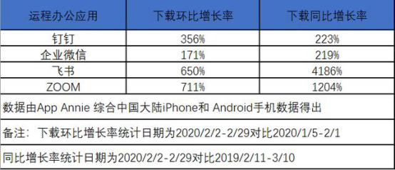 同样的,在线办公应用在疫情期间迎来爆发。艾媒咨询发布的《2020 年中国在线办公行业“战疫”专题数据检测报告》显示,截至 2 月 17 日新春复工期间,中国超 1800 万家企业采用线上远程办公模式,超 3 亿人使用在线办公应用,并预计 2020 年智能移动办公市场规模将达到 449 亿元。