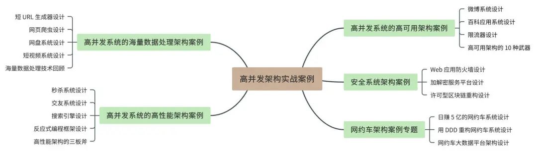 这些案例大多是目前大家比较关注的高并发、高性能、高可用系统。比如网盘、搜索引擎、短视频应用、打车软件、交友软件、微博等。它们是高并发架构设计的优秀“课代表”,它们的技术可以解决现有的 80% 以上的高并发共性问题。