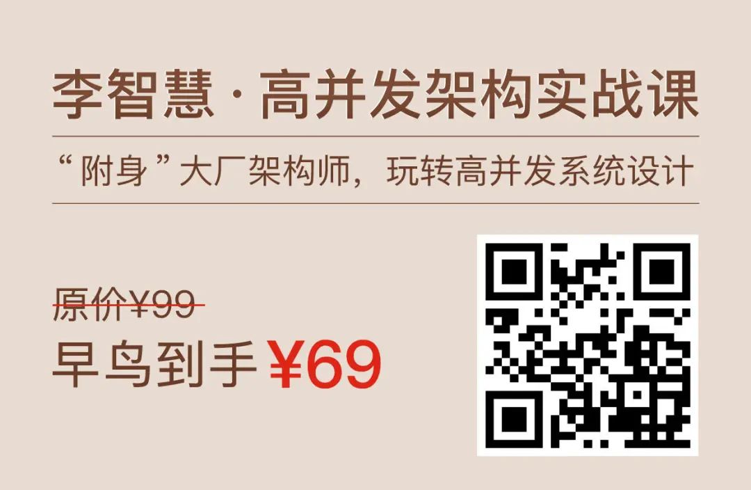 点击「阅读原文」,仅需 ¥69,跟着首席架构师玩转高并发系统设计。