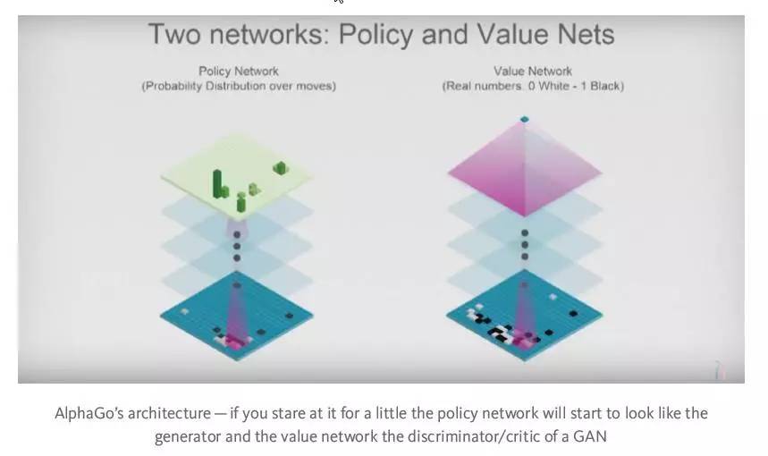 Deep‘ Mind公司用AlphaGo证明了深度对抗学习的厉害之处。在围棋比赛中,AlphaGo可以自己创造新的下法和招数。这开创了围棋的新纪元,突破了过去几千年的一个瓶颈,达到了新的高度。AlphaGo能做到这点是因为它能自己给自己打分,可以随时计算当前的局势的分数,而不用预先人工定义和预编程。这样,AlphaGo自己和自己下了几百万局的比赛。听起来很像对抗学习吧?