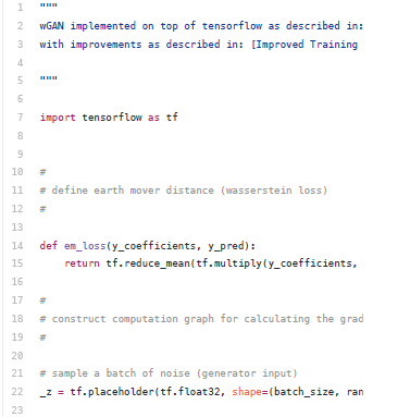 后来对wGAN的训练方法进行了改进,它通过在判别器引入梯度惩罚(gradient penalty)使得训练稳定。梯度惩罚只要简单的加到总损失函数中的Wasserstein距离就可以了。