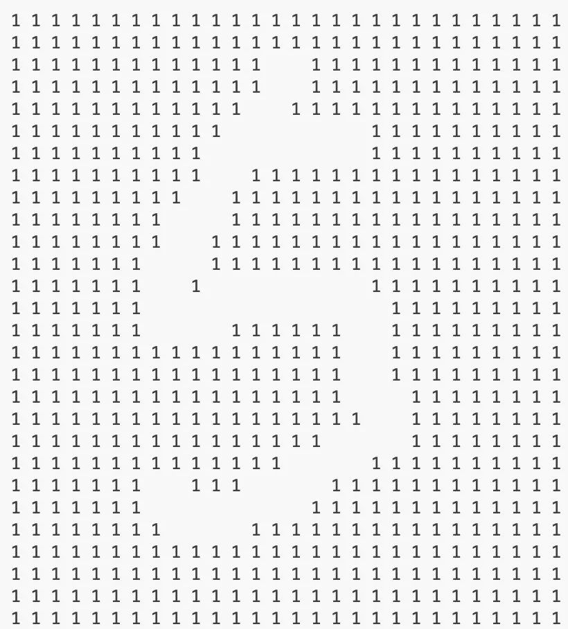 console.log(line.map(_ => _ > 0.3 ? ' ' : '1').join(' '))