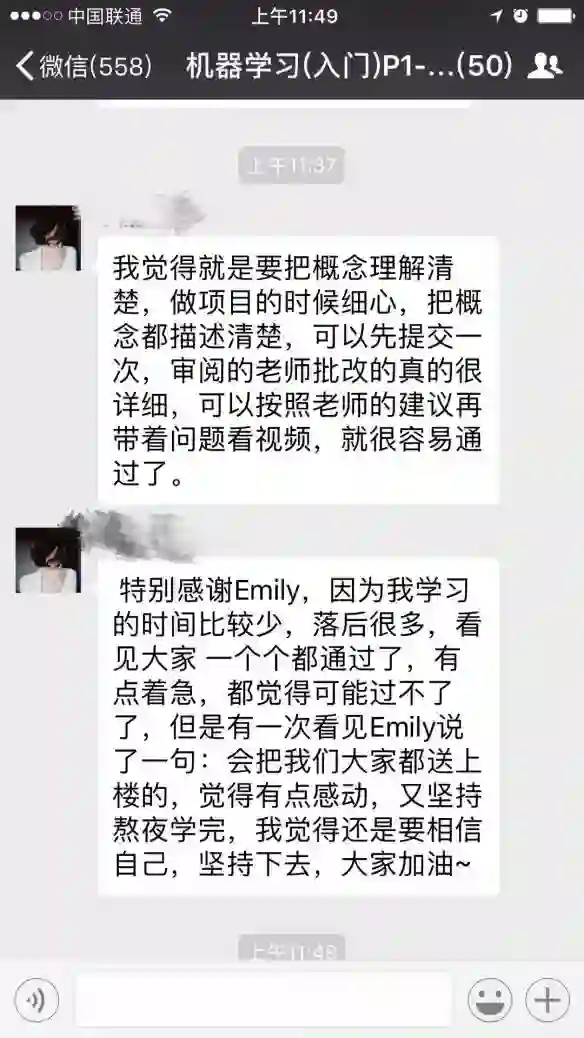 一个人的学习是孤单的,进入一门陌生的领域更是起步维艰。如果你对机器学习感兴趣却不知如何下手,可扫描下方二维码入群,群内有【好学长】【好学姐】为你解答困惑。他们都是Udacity机器学习或深度学习课程的资深学员,要是你有关于机器学习的困惑,前途的迷惘,有关怎么坚持一个人的学习之路的疑问,都可以向他们提问。下面欢迎好学长代表Robin发言
