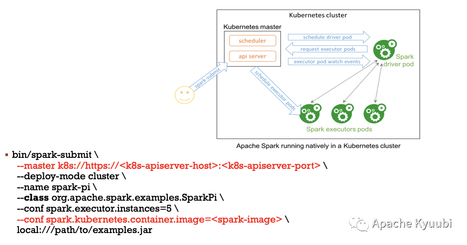 另外,除了这种方式, Kubernetes 在 API 上更加丰富。我们可以通过 Spark Operator[6] 的方式, 如 kubectl apply -f