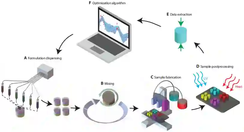 在论文中,研究人员提出了一种半自动化的数据驱动工作流程,寻找用于 3D 打印技术的新型光固化油墨,展现出了成本效益和效率,该工作流程的目的是寻找一组最佳复合配方,在实验中,材料方案由六种主要的光固化油墨配方组成,以改善机械性能,使其超过手动设计的主要配方性能水平,这些复合配方可自动针对多个性能目标进行优化,只需进行有限的实验。