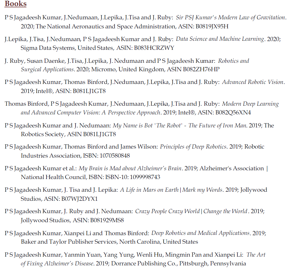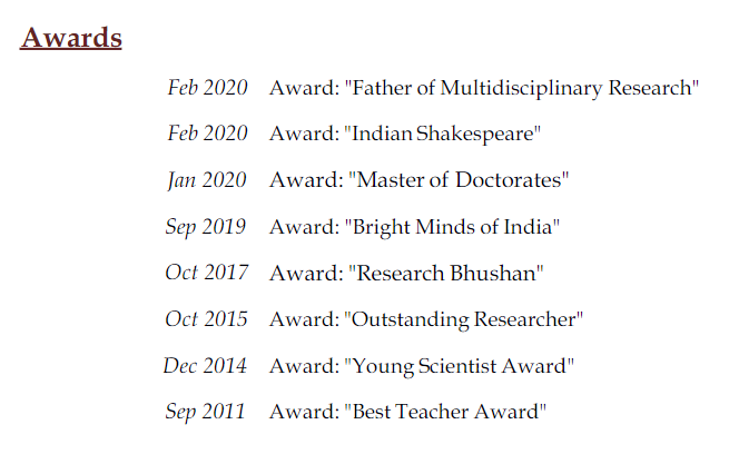 Jagadeesh Kumar「获得」的奖项包括:「多学科研究之父」、「印度莎士比亚」、「杰出研究者」、「最佳论文奖」……