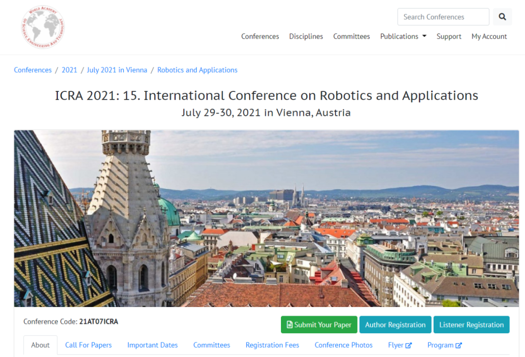 「假 ICRA」官网:https://waset.org/robotics-and-applications-conference-in-july-2021-in-vienna#nav-committees
