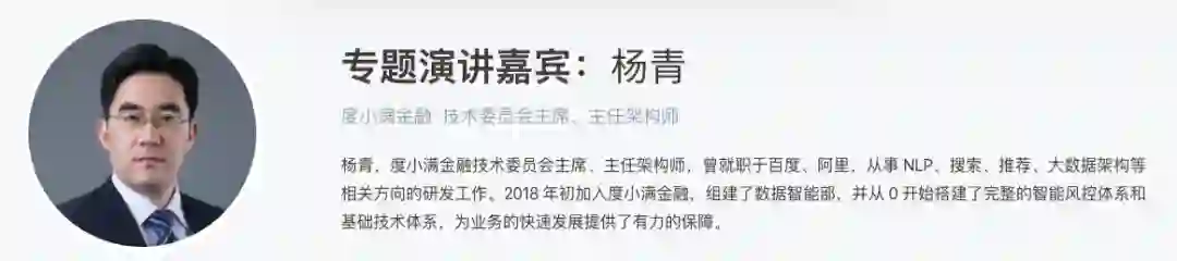 度小满金融从去年开始就有着较高的关注度,风控 + 大数据的结合在反欺诈领域也取得了不错的成绩,本次分享将介绍度小满风控模型体系,以及在整个业务流程的各环节模型中的作用。此外,分享将针对互联网金融风控实践中遇到的困难,给出在实践中总结的解决方案。最后,随着新的二代征信已经广泛应用,本次分享也将介绍新的征信读解与数据挖掘方法。