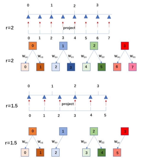 图 2:当非整数缩放因子 r=1.5 时,如何放大特征图的示意图