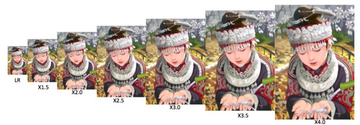 单一图像超分辨率(single image super-resolution/SISR)旨在把一张较低分辨率(low-resolution/LR)的图像重建为一张自然而逼真的高分辨率(high-resolution/HR)图像,这项技术在城市管理、医疗影像、卫星及航空成像方面有着广泛应用。实际生活中,用户使用 SISR 技术把一张 LR 图像放大为自定义的大小也是一种刚需。正如借助于图像浏览器,用户拖动鼠标可任意缩放一张图像,以查看特定细节。