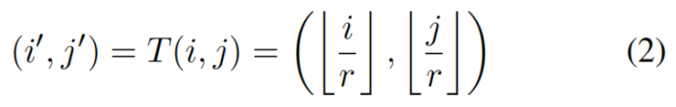 对于 SR 图像上的每个像素(i, j),Location Projection 的作用是找到与像素(i, j)对应的 LR 图像上的像素(i′, j′)。本文认为,像素(i, j)的值是由像素(i′, j′)的特征所决定。下面的投影算子可映射这两个像素: