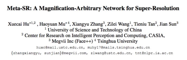 论文名称:Meta-SR: A Magnification-Arbitrary Network for Super-Resolution