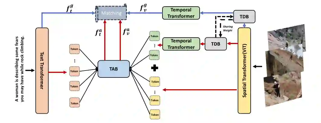 然后作者将这些视觉帧特征和差分帧特征进行 concat,输入到 TAB 中和文本特征进行对齐,这部分的操作和《T2VLAD: Global-Local Sequence Alignment for Text-Video Retrieval》中的对齐操作相似,都是将视频和文本特征对齐到共享的聚类中心。最后基于局部对齐的特征和全局的特征进行相似度计算,得到最终文本和视频的相似度。