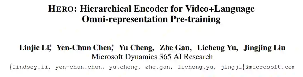 HERO: Hierarchical Encoder for Video+Language Omni-representation Pre-training