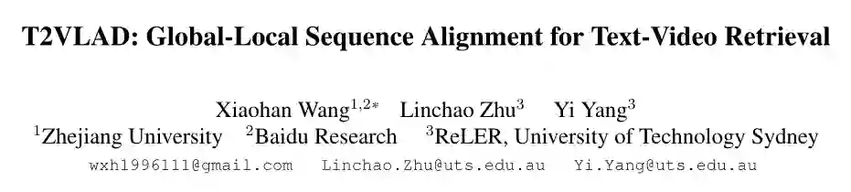 T2VLAD: Global-Local Sequence Alignment for Text-Video Retrieval