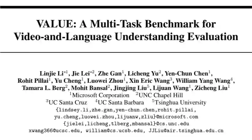 目前视频和语言的理解任务大多是在不同的数据集上进行评估的,很难衡量一个视频语言模型的综合性能。为此,作者提出了一个 VALUE 基准,这个基准包括了 11 个视频语言数据集,涵盖不同的视频类型、视频长度和数据量。