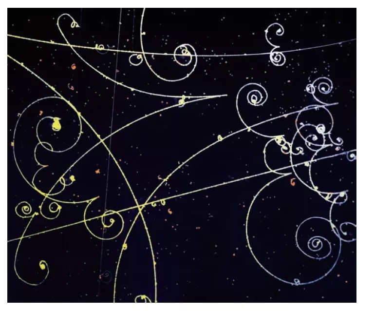 量子世界的可见痕迹——物理实验显示的基本粒子运动轨迹。在磁场的作用下,基本粒子沿螺旋形轨迹运动,这说明它们是带电的